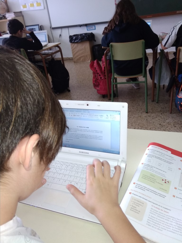 Poco a poco, con paciencia, a través de copiados, estamos soltándonos para aprender a escribir a ordenador, cada vez más rápido.